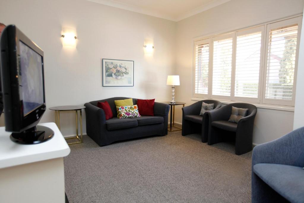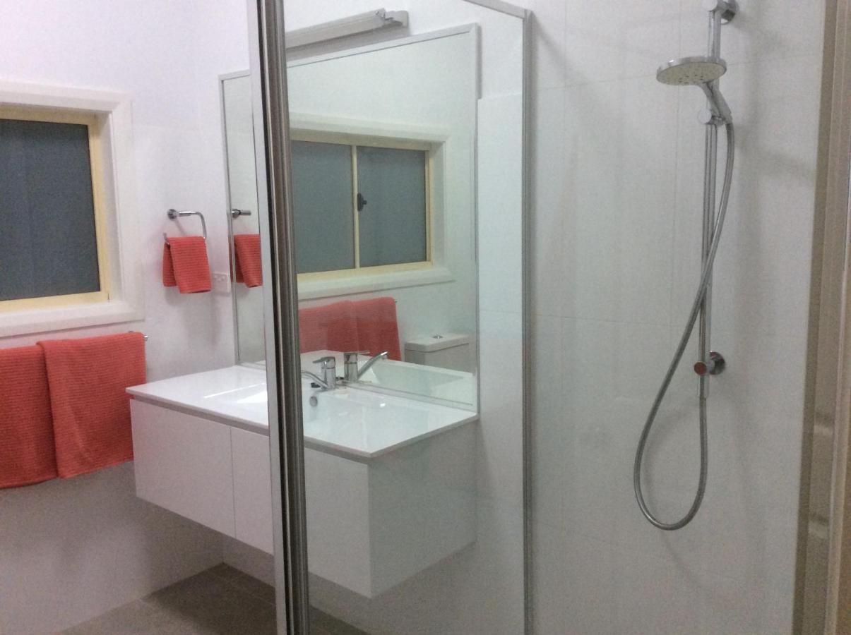 This apartment features a private bathroom with a spa bath. It also includes full laundry facilities and a fully equipped kitchen.