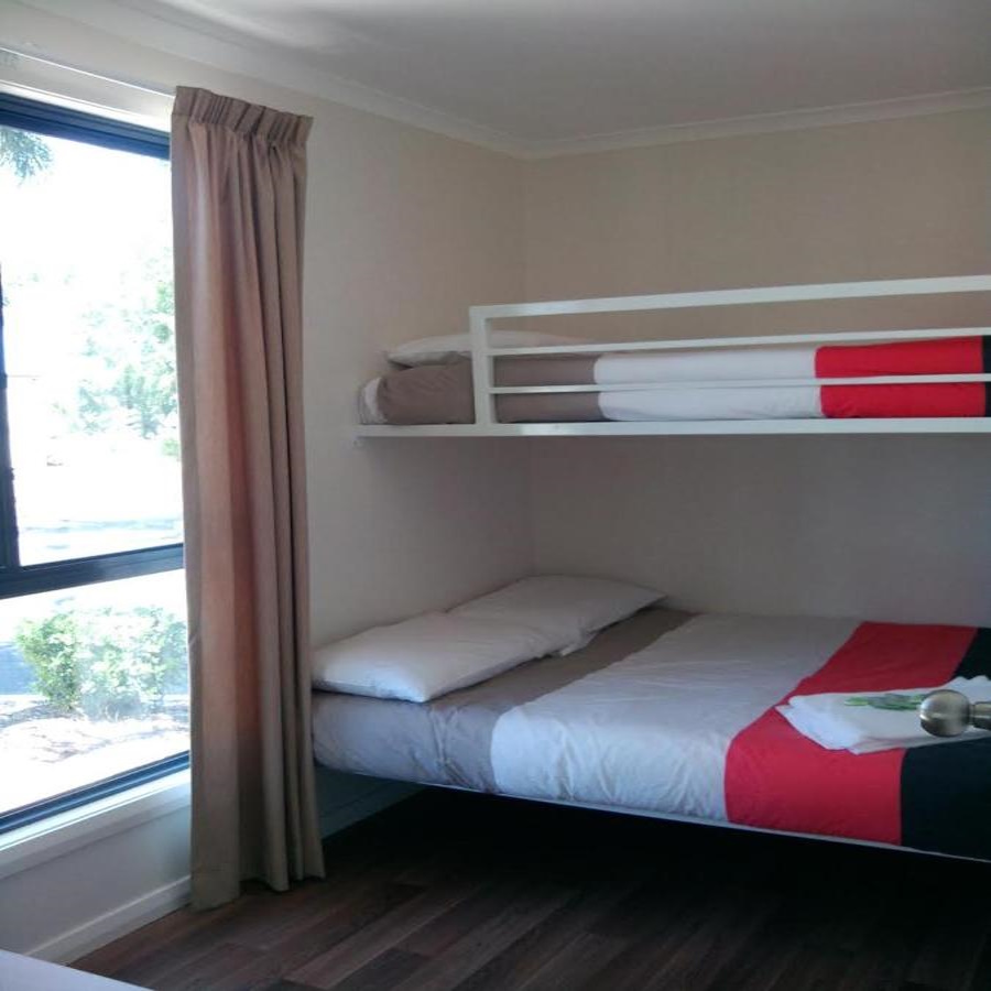 This modern two bedroom cabin offers all the comforts of home. Linen and towels are provided for your convenience. This cabin contains a private ensuite and has a spacious open plan kitchen, dining and lounge area with the kitchen containing a stove top, microwave, fridge and all utensils to make a home cooked meal. Disable access cabins may be available upon request.